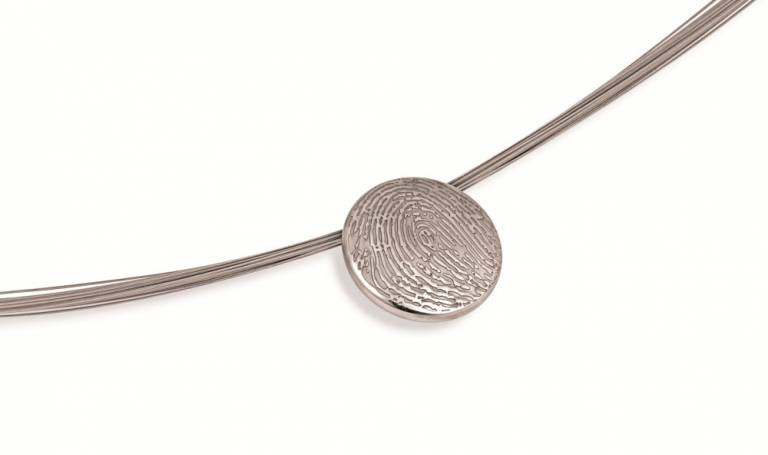Wenn ein geliebter Mensch verstirbt, ist es für Angehörige eine sehr große Herausforderung den Verlust zu verarbeiten. Erinnerungsschmuck kann für die Hinterbliebenen eine wertvolle Hilfe im Trauerprozess sein. Hierzu wird der Fingerabdruck des Verstorbenen mit einem speziellen Stempelkissen entnommen und im Anschluss digitalisiert. Hiermit wird dieser mit einer Lasertechnik auf das ausgewählte Schmuckstück verewigt.